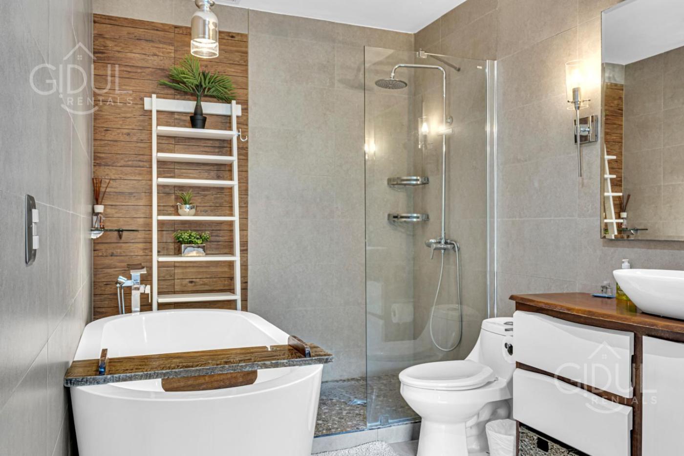 The spacious apartment has 3 bedrooms, a TV, a fully equipped kitchen with a microwave and a fridge, a washing machine, and 3 bathrooms with a bath. For added privacy, the accommodation has a private entrance and is protected by full-day security.